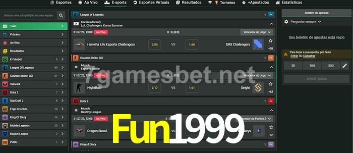 A aposta Fun1999 oferece aos jogadores a experiência mais conveniente de apostas em eSports!